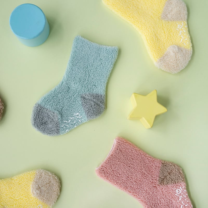 赤ちゃんの足元をやさしく包む、ふんわりパイル素材のベビーソックス。