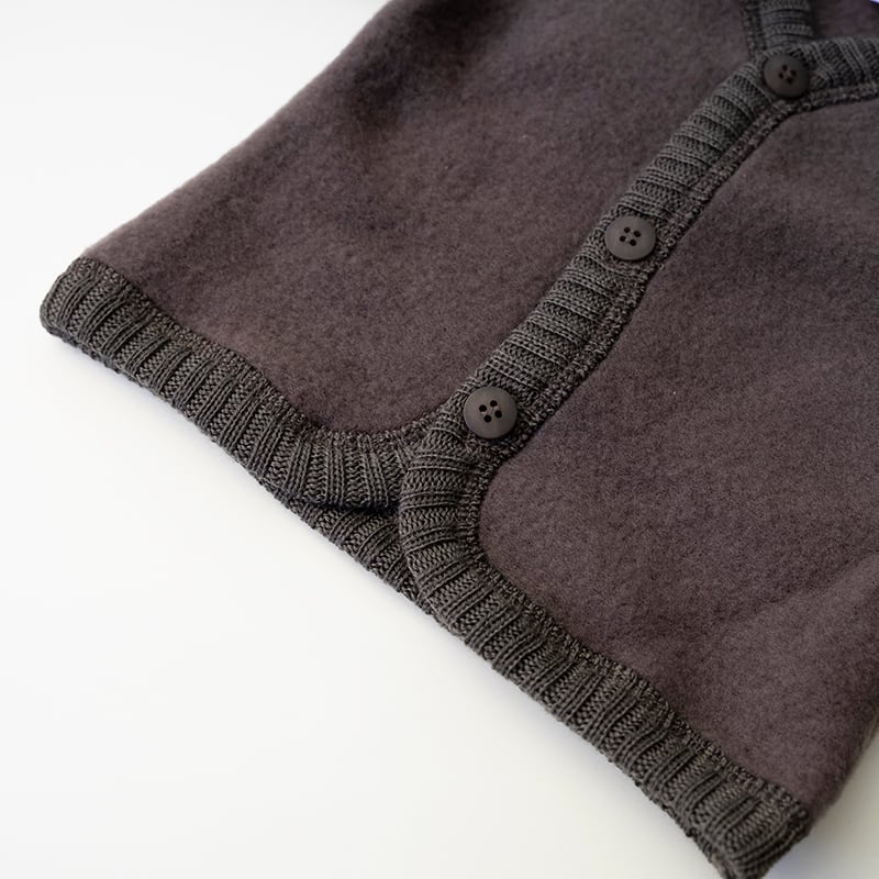 メリノウール100%のソフトウールを使用したカーディガン。羊毛の中でも最上級のメリノウール。その中でも細い繊維のみを使用しているため、チクチクとした不快感もなく、ベビーにも安心してお使いいただけるほど滑らかな肌触りです。