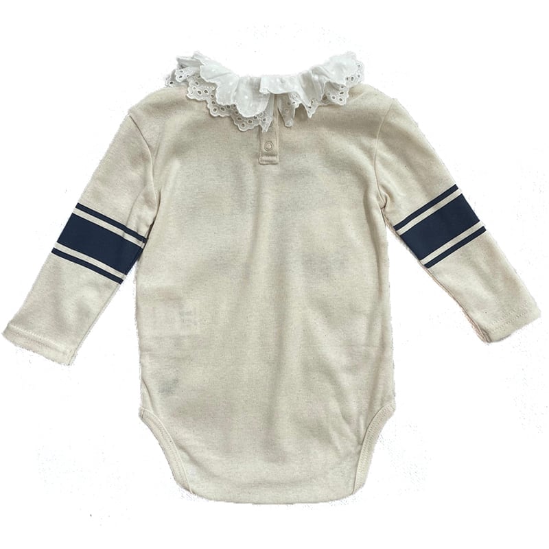 ビンテージのナンバリングTシャツのようなベビーロンパースです。