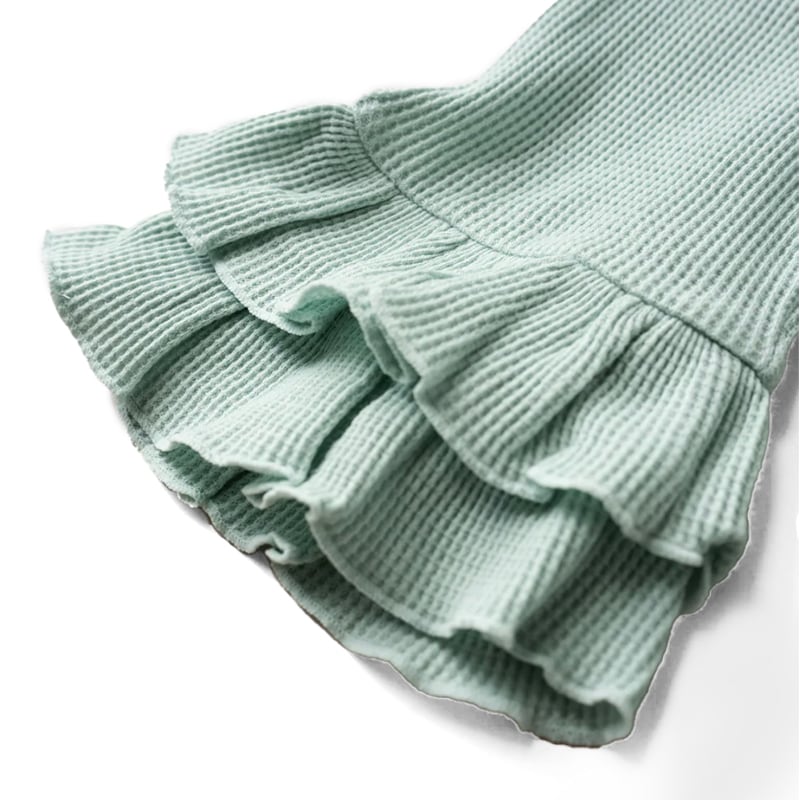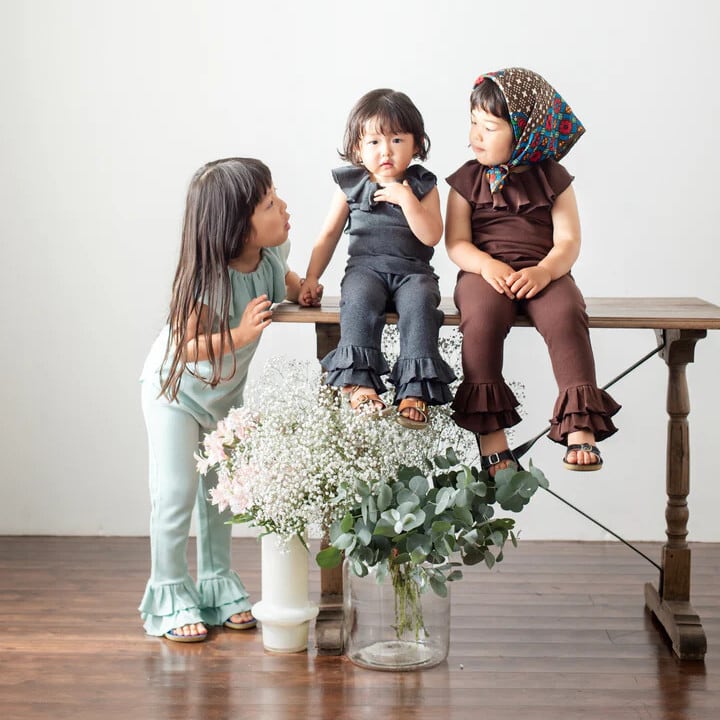 裾の2段フリルがシンプルなカラーを引き立て、可愛らしさとおしゃれ感をプラスしています。