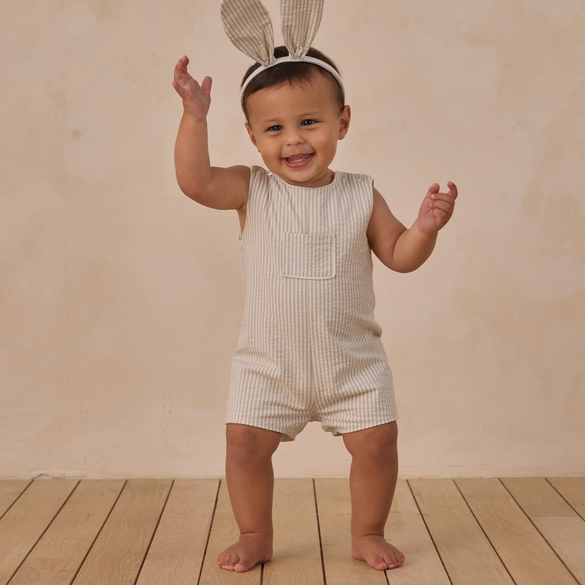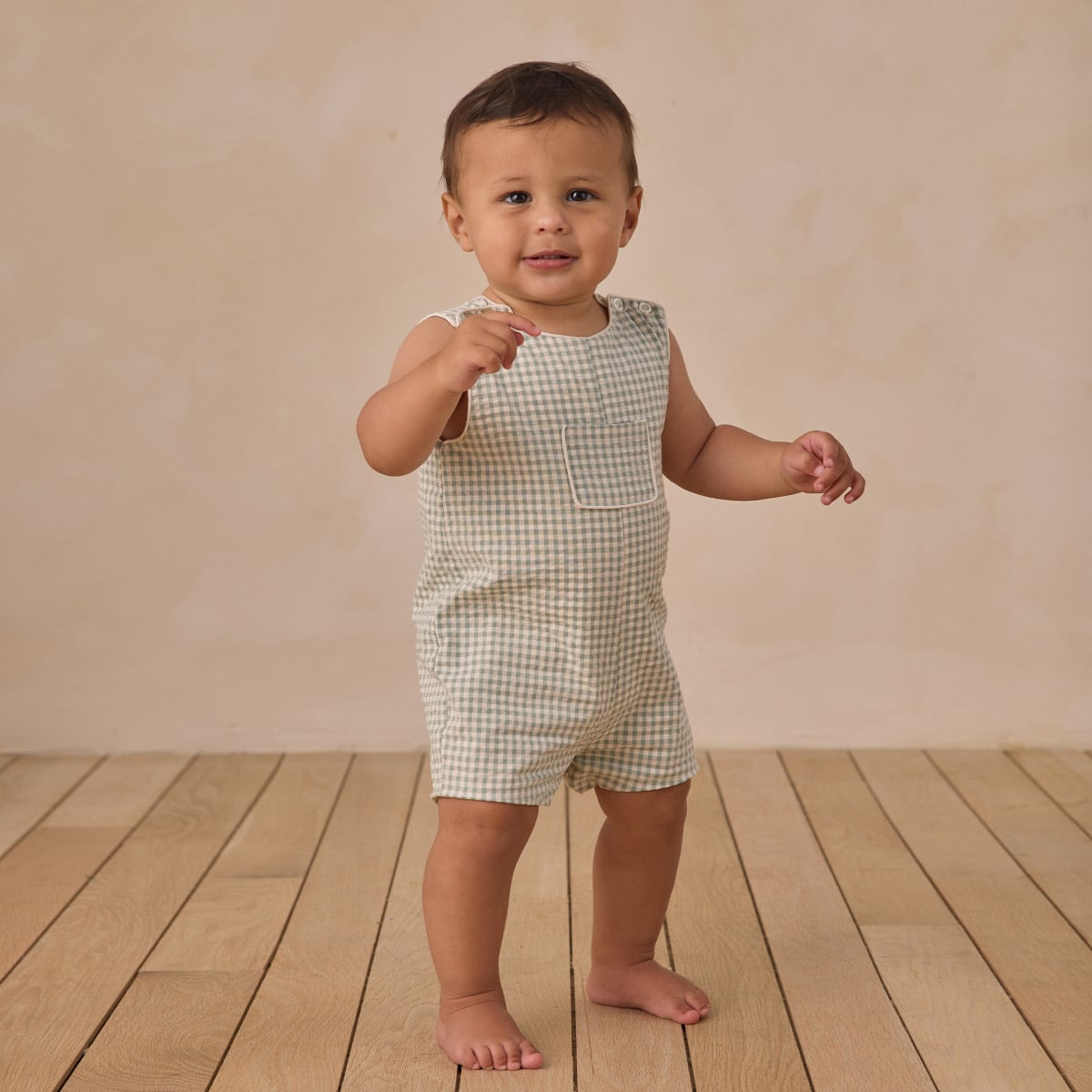 小さなジェントルマンにぴったりの、かわいらしいロンパースです。