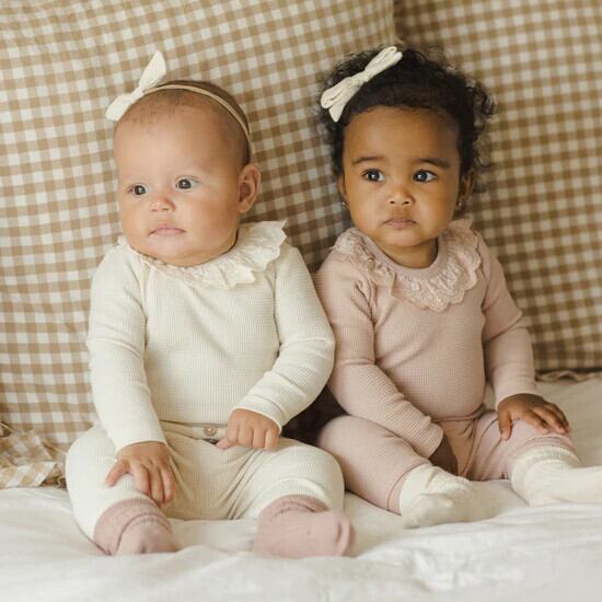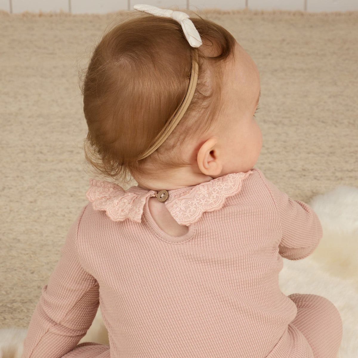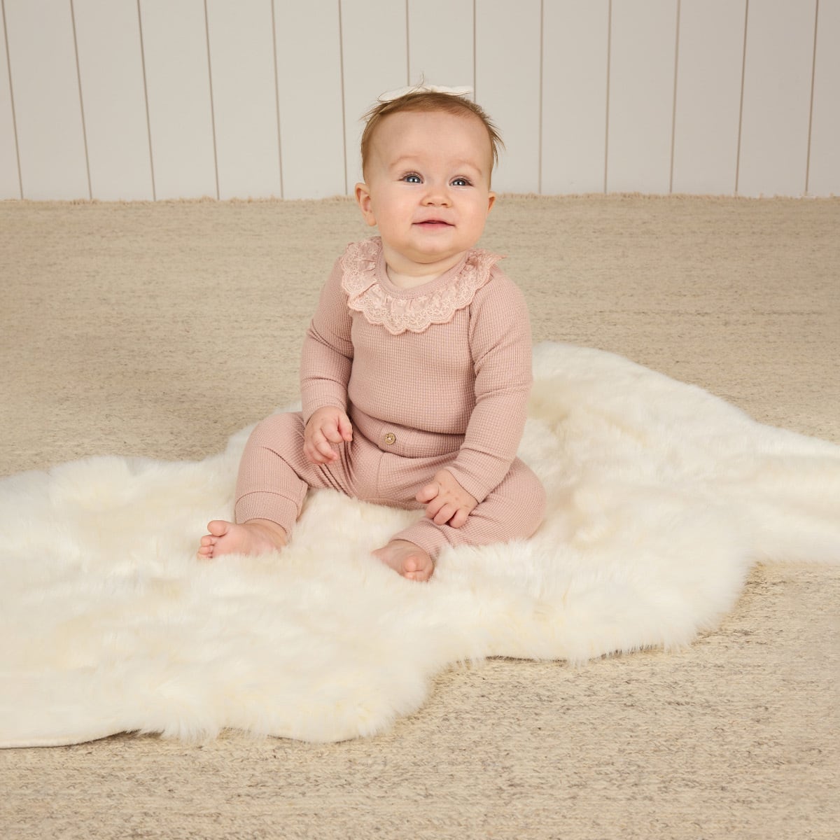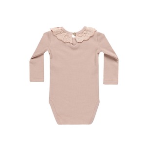 かわいいフリルの襟が付いた長袖ワンジーです。